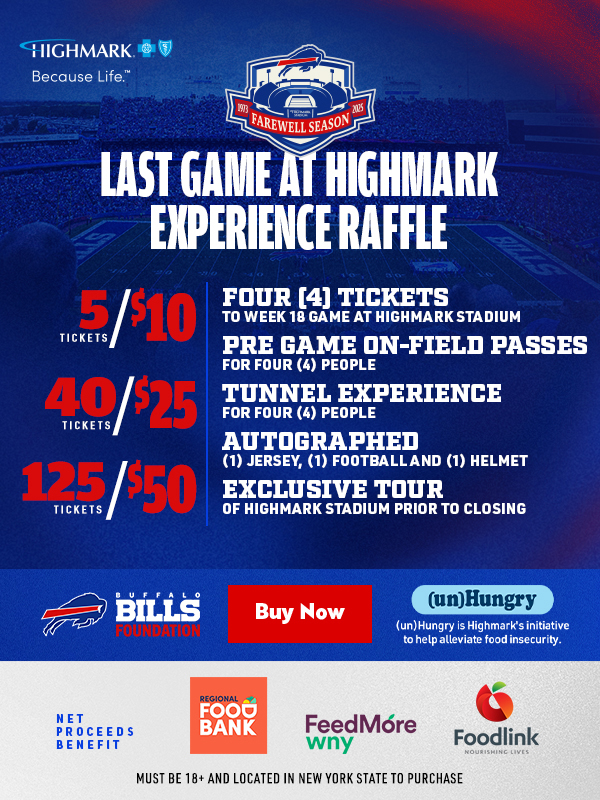 Open to the entire community, the raffle offers an incredible array of exclusive Buffalo Bills experiences and signed memorabilia as the team closes out its farewell season at the current Highmark Stadium.